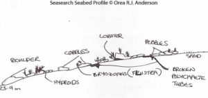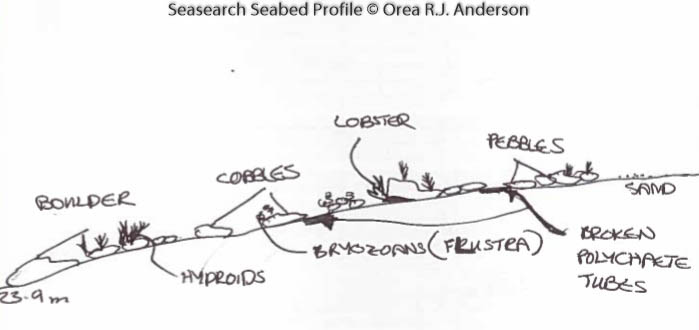 Boulders are dominated by bryozoans and hydroids with various sea squirt species present.