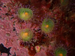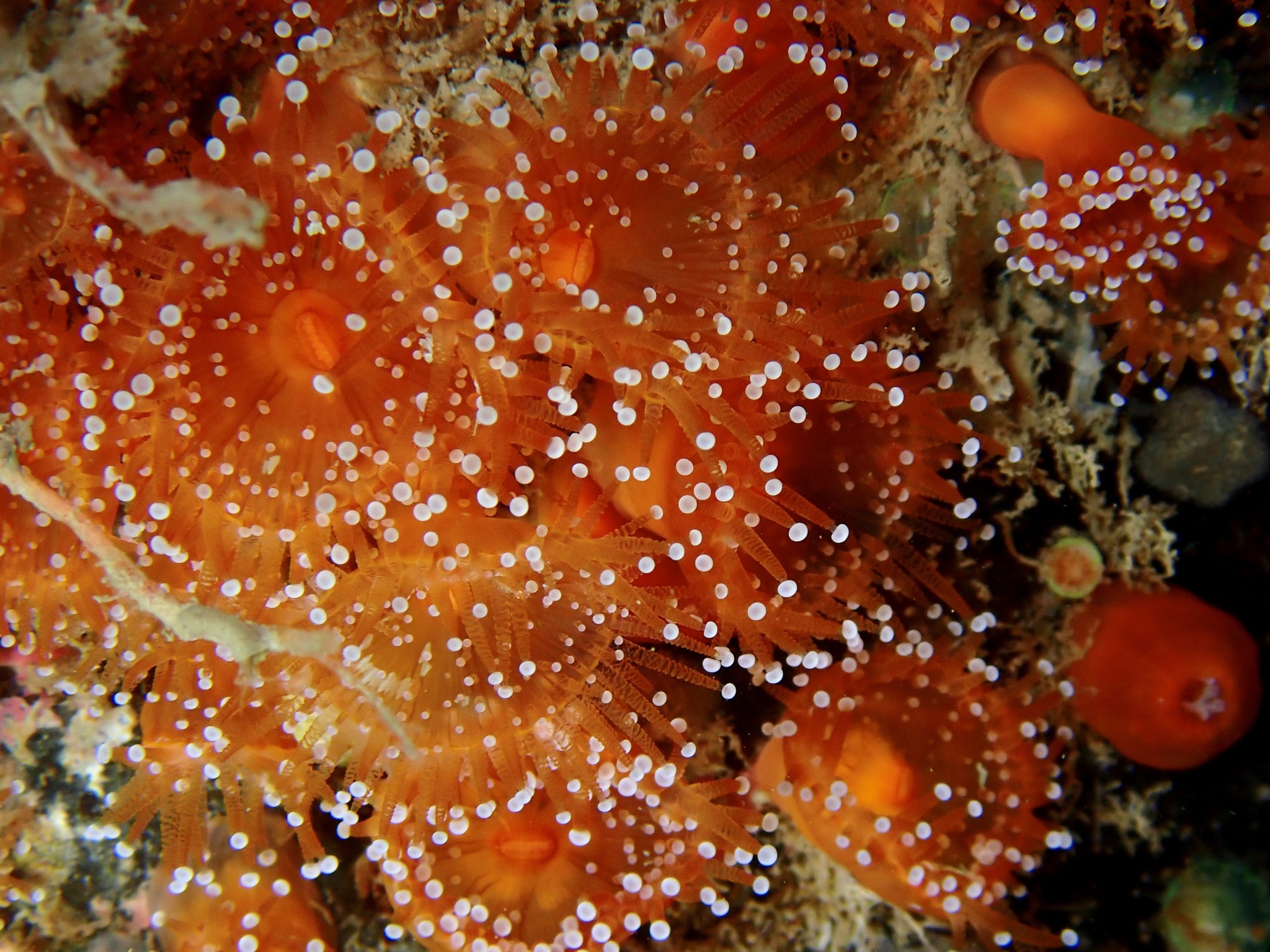 The bedrock is covered in dead men’s fingers Alcyonium digitatum. Several Northern Ireland Priority Species of hydroid can be found here including, Diphasia alata, Diphasia nigra, Polyplumaria flabellata and Lytocarpia myriophyllum. They are all characteristic of the site and the Maidens are a stronghold for these species in the British Isles.