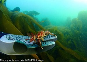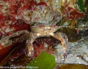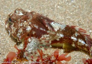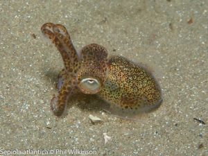 Various crustacean and anemone species, including the dahlia anemone Urticina felina, are common here. A variety of fish can be seen, such as wrasse and gobies. Keep an eye out for the unusual and slightly grotesque lumpsucker Cyclopterus lumpus which was filmed by Phil Wilkinson at this site recently. Bobtail squid Sepiola atlantica and octopus are often sighted here as well.
