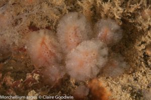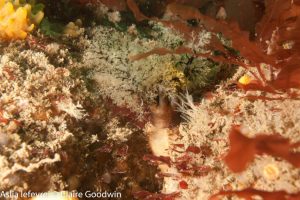 The boulders support a diversity of sea squirt, hydroid and bryozoan species (esp. Crisia spp.).