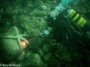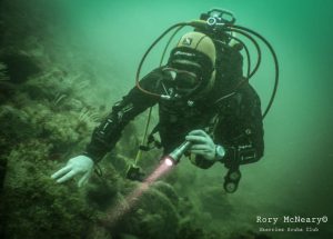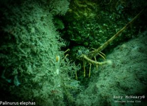 Seabed community dominated by kelp and mixed red algae and a diversity of fish including wrasse and the reticulated dragonet Callionymus reticulatus. The rare nudibranch (sea slug) Crimora papillata has been recorded at the site previously, as well as the crawfish / spiny lobster Palinurus elephas, a Northern Ireland Priority Species which based on increasing records from divers in the area, is either showing signs of recovery or range expansion.