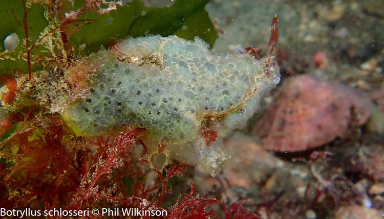 Dense kelp and mixed algae are found growing around the wreck. The wreck itself is home to wrasse, starfish, molluscs, crustaceans and the occasional octopus.