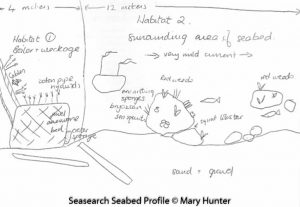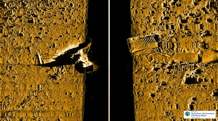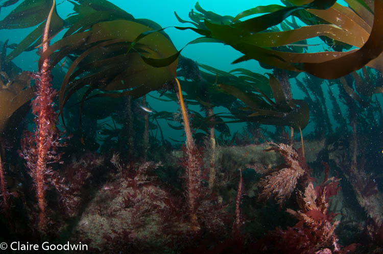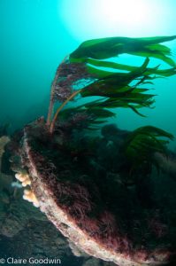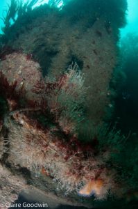 Much of the wreck and surrounding seabed are covered in patches of kelp. bow of the wreck is covered in patches of kelp. Dense colonies of Dead man’s fingers Alcyonium digitatum and hydroids are also found on the wreck. The European spiny lobster (crawfish) Palinurus elephas, a Northern Ireland Priority Species, has also been recorded on the wreck.