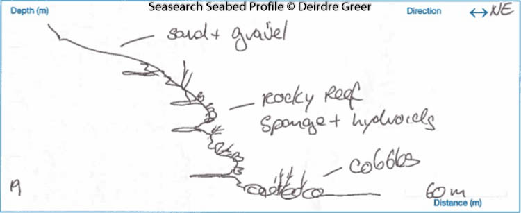 A bedrock shelf with overlying sand and gravel. The base of the reef can be found at 19 metres.