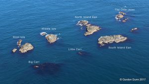 By boat from Portrush. The site is approx 250 metres to the north of Ramore Head in the middle between North Island Ean, South Island Ean and The Otter Isles (east of The Skerries).